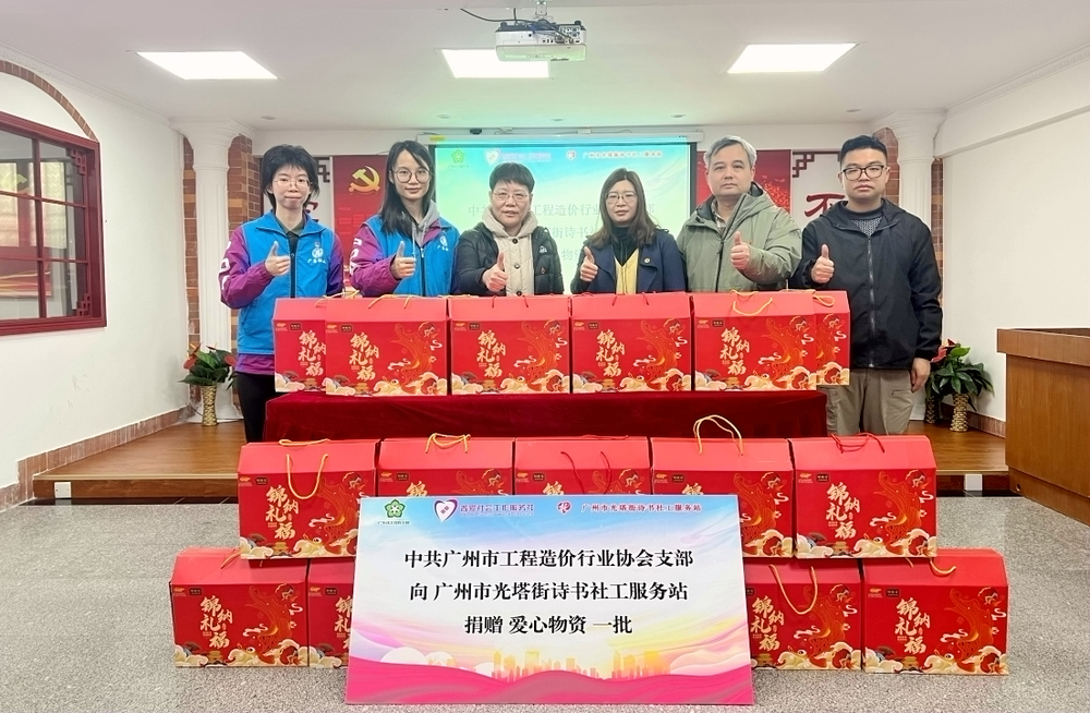 我会党支部参加困难群众和特殊群体新春慰问活动2025年1月16日,广州市工程造价行业协会党支部与中共广州市越秀区光塔街诗书社工服务站支部、广东广信君达律师事务所第四党支部、广州五羊城酒店有限公司党支部委员会、广州市南粤医药研究所门诊部党支部、越秀区生鹏线材党支部、越秀区瑞兴纸行幼儿园党支部、广州市胜唐工业皮带有限公司党支部、广州市特殊儿童发展促进会党支部、广州市普爱社会工作服务社党支部、广州普瑞眼科医院、广州飞虹半导体科技有限公司、广东省爱牙工程共同开展“党建引领聚民心,携手共建送关怀”——光塔街2025年困难群众和特殊群体新春慰问活动。