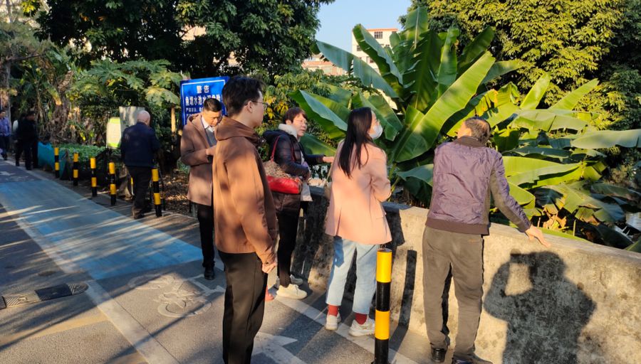 活动的最后,协会代表实地考察了邝家庄村第一经济社的“一涌两岸”区域。当地村委向协会代表详细介绍了“一涌两岸”的地理结构,并与协会的设计师就该区域的环境美化规划设想进行了充分的沟通。