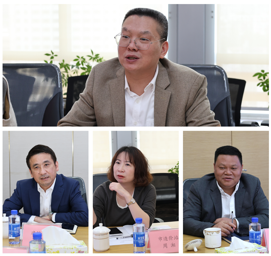 广州市造价站与市造价协会赴建鋐公司开展调研座谈2025年11月13日,广州市建设工程造价管理站(以下简称“市造价站”)与广州市工程造价行业协会(以下简称“市造价协会”)联合赴广州市建鋐建筑技术咨询有限公司(以下简称“建鋐咨询”)进行调研交流。 本次调研由市造价站站长李芮兵带队,调研组成员包括副站长周湘、材料价格信息科科长翁春旭、副科长罗鸿婧,以及市造价协会秘书长伍捷、副主任朱志浩。建鋐咨询的董事长马建军、董事总经理陈泽宏以及该公司的管理层等参加了本次的座谈交流。